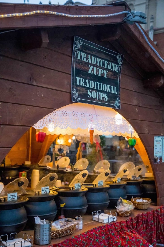 Barszcz (Beetroot Soup): A warm, tangy beetroot soup, often served with a small pastry called uszka (tiny dumplings filled with mushrooms). Barszcz is especially popular during the Christmas season and offers a comforting, warming option on cold market days.