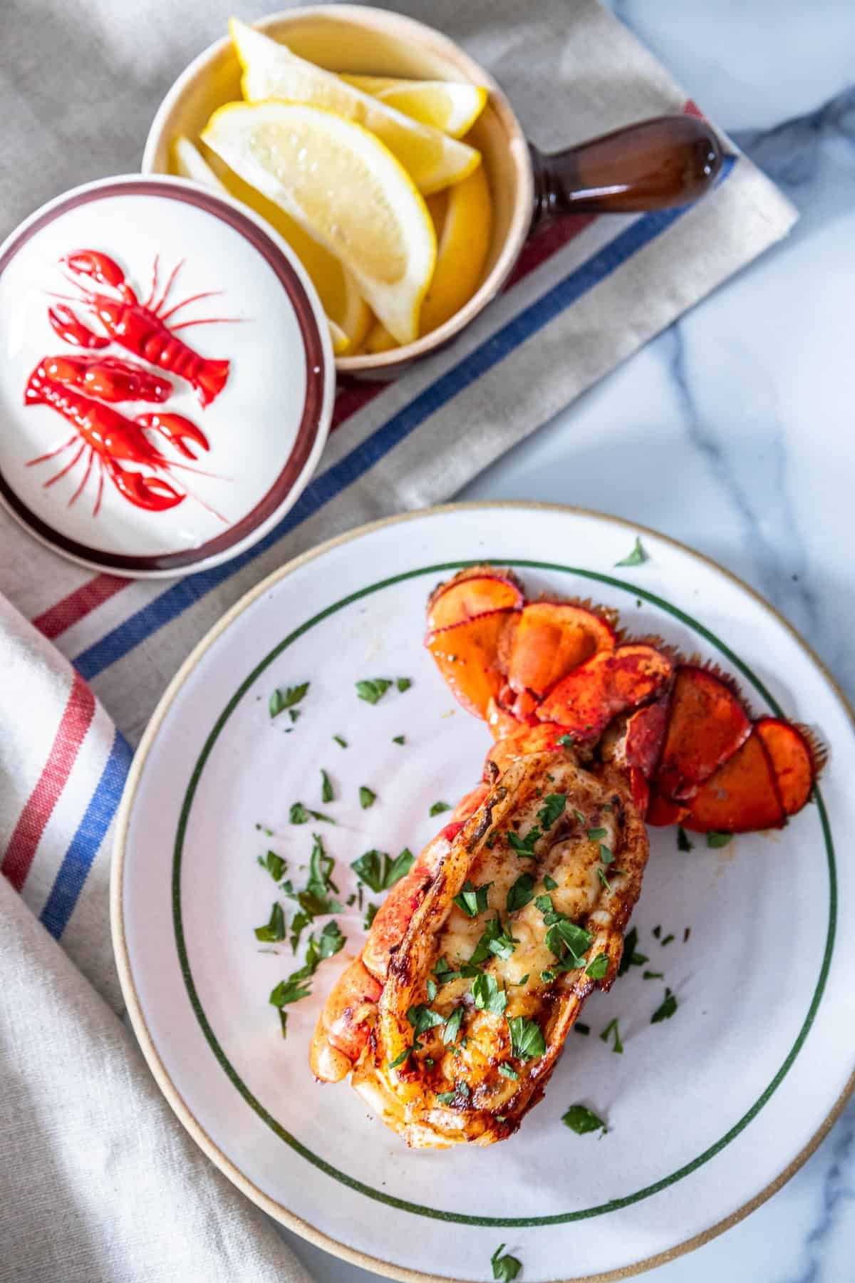 Lemon Wedges: Fresh lemon wedges provide a bright and zesty contrast to the rich, buttery lobster meat. Squeezing a little lemon juice over the lobster tail just before serving can elevate the flavors.
